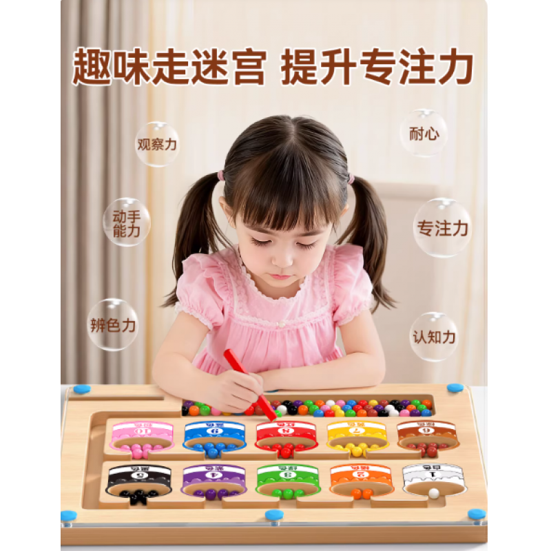 磁力迷宫走珠2岁宝宝专注力训练儿童3到6岁颜色认知早教益智玩具